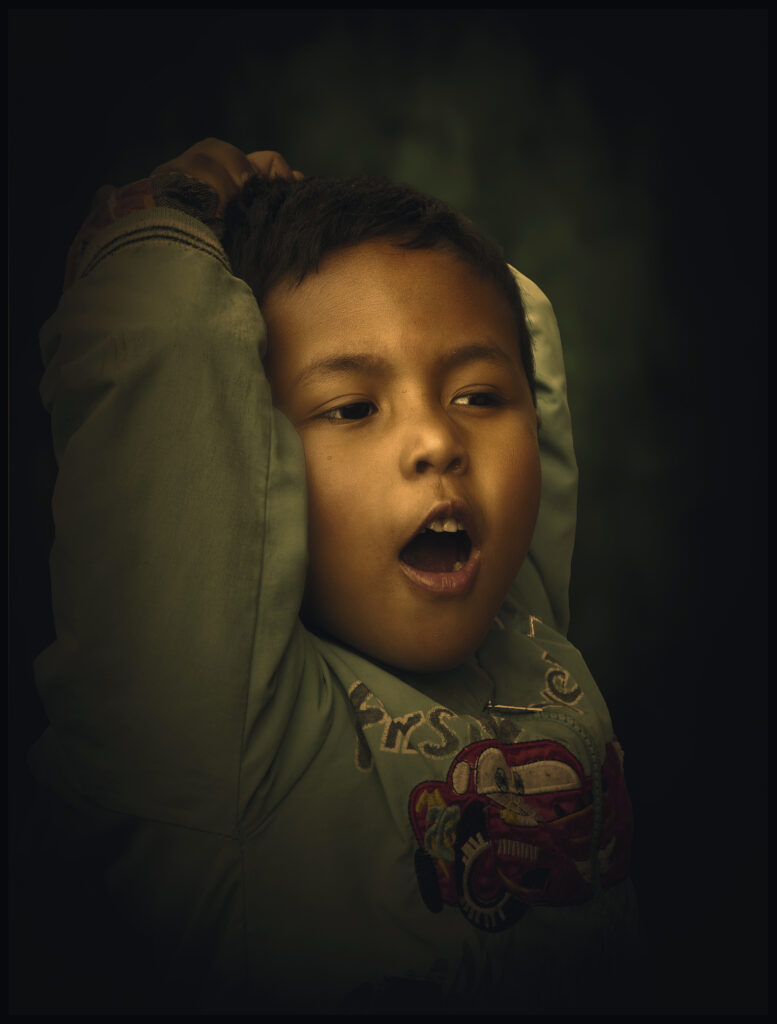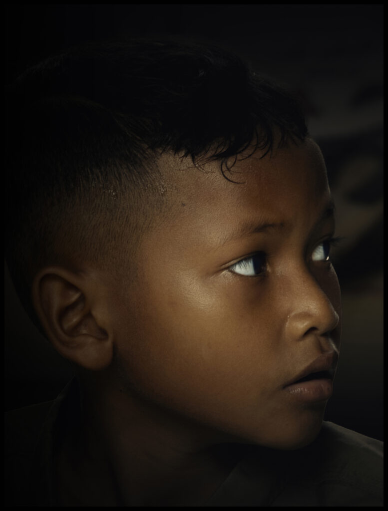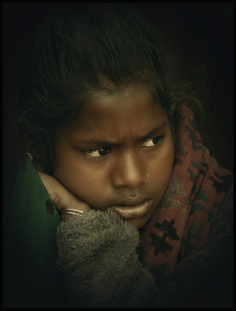 Rodeada de oscuridad, buscas ese resquicio de luz que os proteja de los demonios, o de los dioses, que te han resignado a una vida sin esperanza y, quizás, también sin sueños. Y en tu mirada, en tu actitud, juego a adivinar el enfado, la rabia que trasciende de tu gesto.