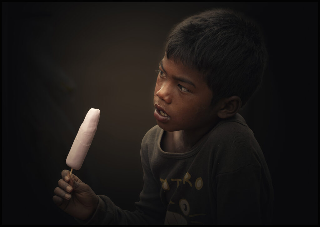 Pero esa melodía referida, no quebrará los cabales de los habitantes de la aldea. Al contrario, les llenará de ilusión a los más pequeños porque han llegado los helados. Abandonarán los juegos en los que anduvieran entregados y correrán ansiosos a pedir unas monedas. Y suplicarán, rogarán, incluso derramarán lágrimas sinceras que acabarán conmoviendo a la madre, o tal vez a la abuela, y, con el dinero en la mano, emprenderán carrera para no quedarse sin su helado. Y una vez conseguido, resplandeciente y luminoso, lo lamerán con cuidado, con mimo y temor, no vaya a ser que, de un lametón intenso, disminuya drásticamente su volumen y, por tanto, el tiempo de disfrute y gozo. Pero también lo mirará temeroso de que se deshaga. Y tras dudar unos segundos, enseguida a la boca, por si acaso.