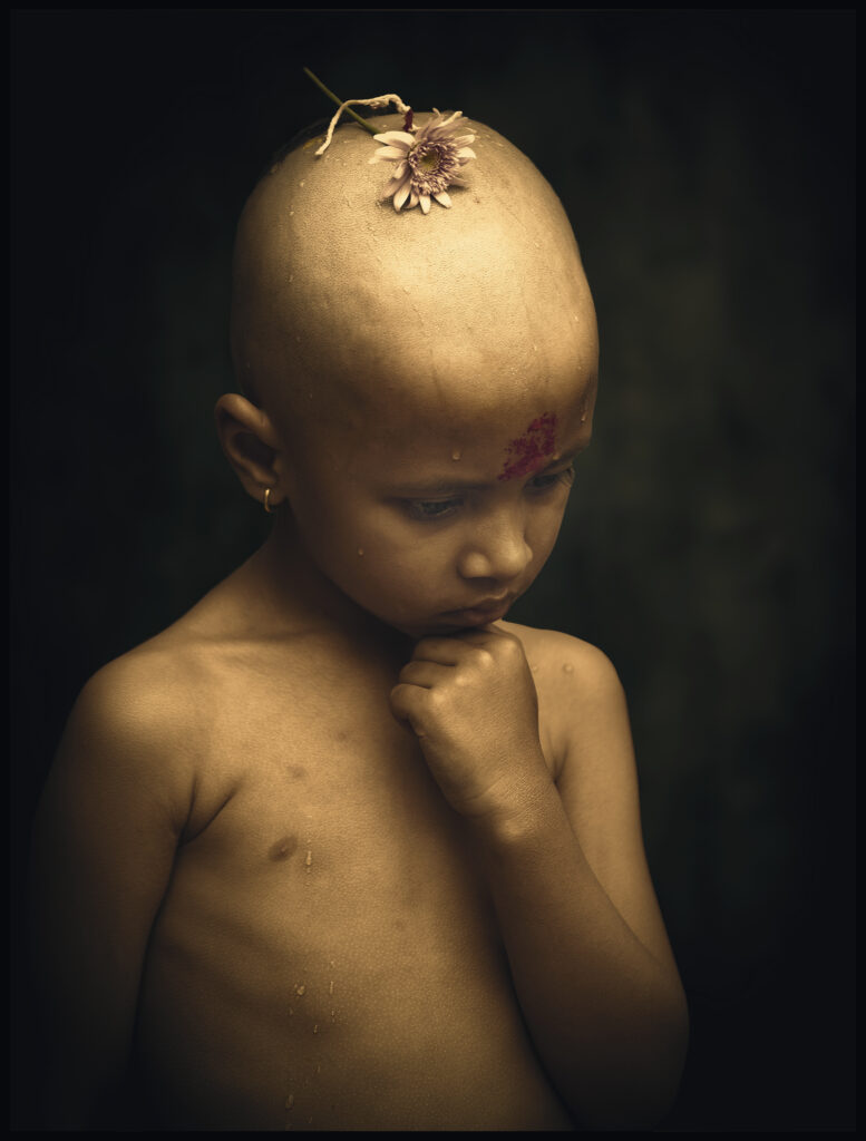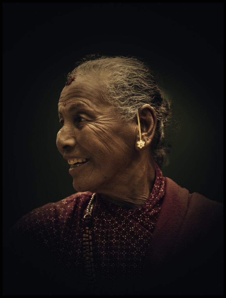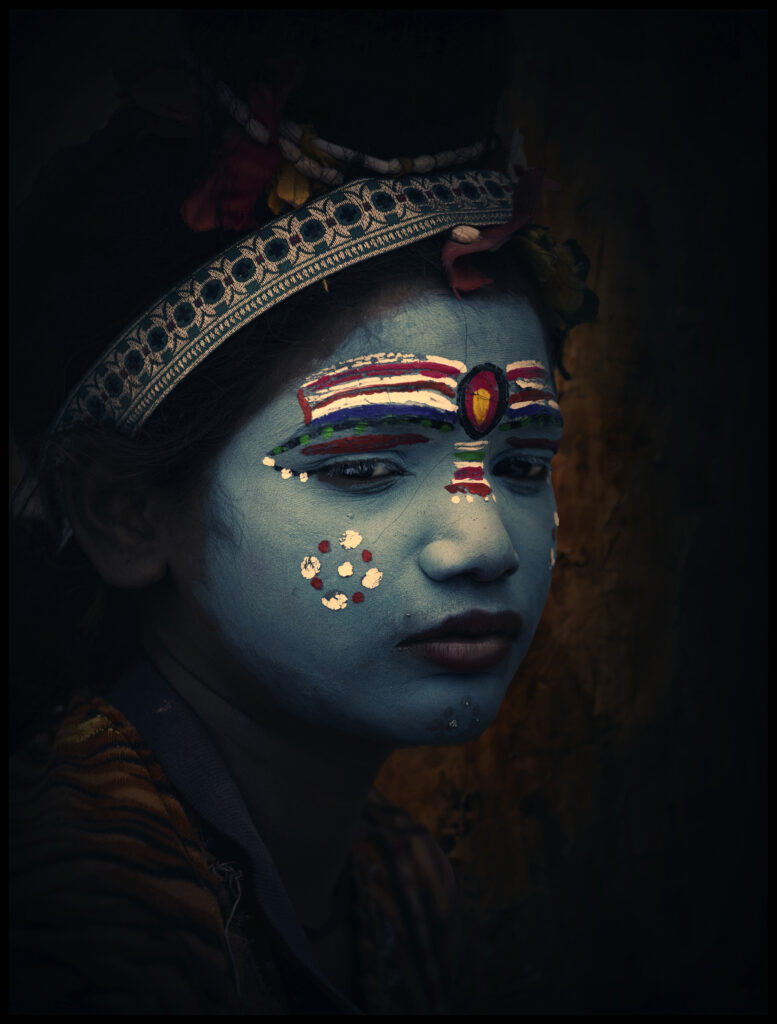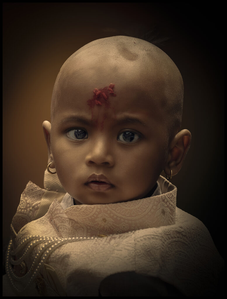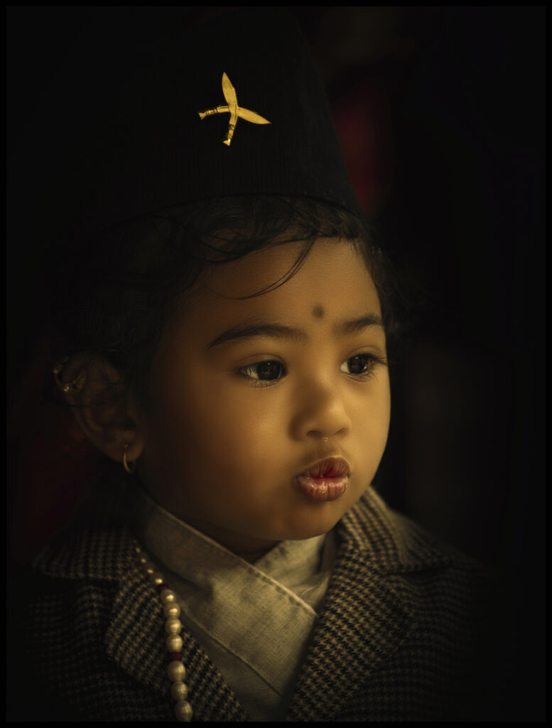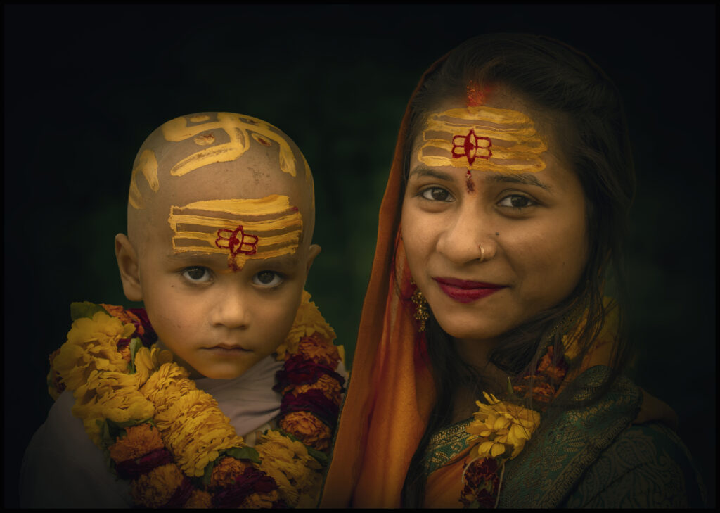 Una procesión encabezada por una cabra y dos niños portando unas palmas, esparce antiguos sones de tambores, flautas, campanillas y trompas. A los niños, les siguen los músicos y a continuación, hombres y mujeres ataviados con sus mejores galas y portando regalos, ofrendas de comida y guirnaldas de flores. Entre todos ellos, destaca ella. Sonrisa radiante y la felicidad desbordando sus ojos, relucientes de dicha, Bello ropaje y flores de distintos colores adornando el cabello recogido, dejando abiertamente expuesto su rostro, su hermosura. Lleva un niño en brazos, vestido de blanco, afeitada la cabeza y al que deja con delicadeza en el suelo. Porque todos quieren estar con ella que, agradecida, se presta a hacerse fotos con los integrantes del cortejo que comparten con ella el gozo de un día especial.
