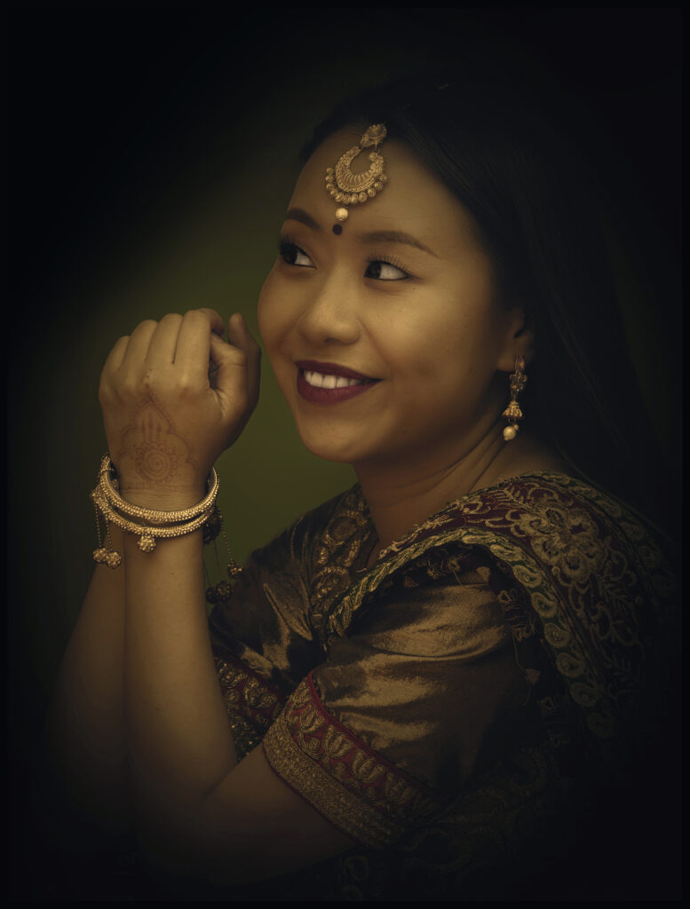 ¿De dónde vienen las sonrisas? Las sonrisas nos llegan desde los sueños, lugares estos que nos permiten ir más allá de lo que sentimos, de lo que vivimos. Y quizás ella ha sido capaz de soñarse luminosa y radiante, adornada con las joyas que han acompañado a la familia desde siempre y que, también desde siempre, le prometieron que, cuando se hiciera mujer, darían brillo y lustre a su belleza. Y ella soñó durante años con ese día radiante en el que el sol sentiría envidia de la luz de sus ojos. Y soñó cubrir su cuerpo con las lujosas telas que bordaron sus abuelas y que permanecían guardadas en aquel baúl en el que su madre recogía los recuerdos. Soñó con presentarse así ante su esposo, soñado príncipe hermoso, que la acogería con ternura y amor, con dulces miradas y delicadas caricias. Y, en el sueño, danzaba para él sobre una gigantesca flor de loto que emergía del centro del lago, al son de la sinfonía que el cielo interpretaba para ella. Y quizás soñó que a los dos les crecieron las alas y, enamorados, volaron hasta una nube cercana a la luna para reconocerse y amarse. Cuando llega el día y el cortejo del novio llama a su puerta, ella recupera la sonrisa del sueño y mira esperanzada al futuro sin saber todavía que los sueños, sueños son.