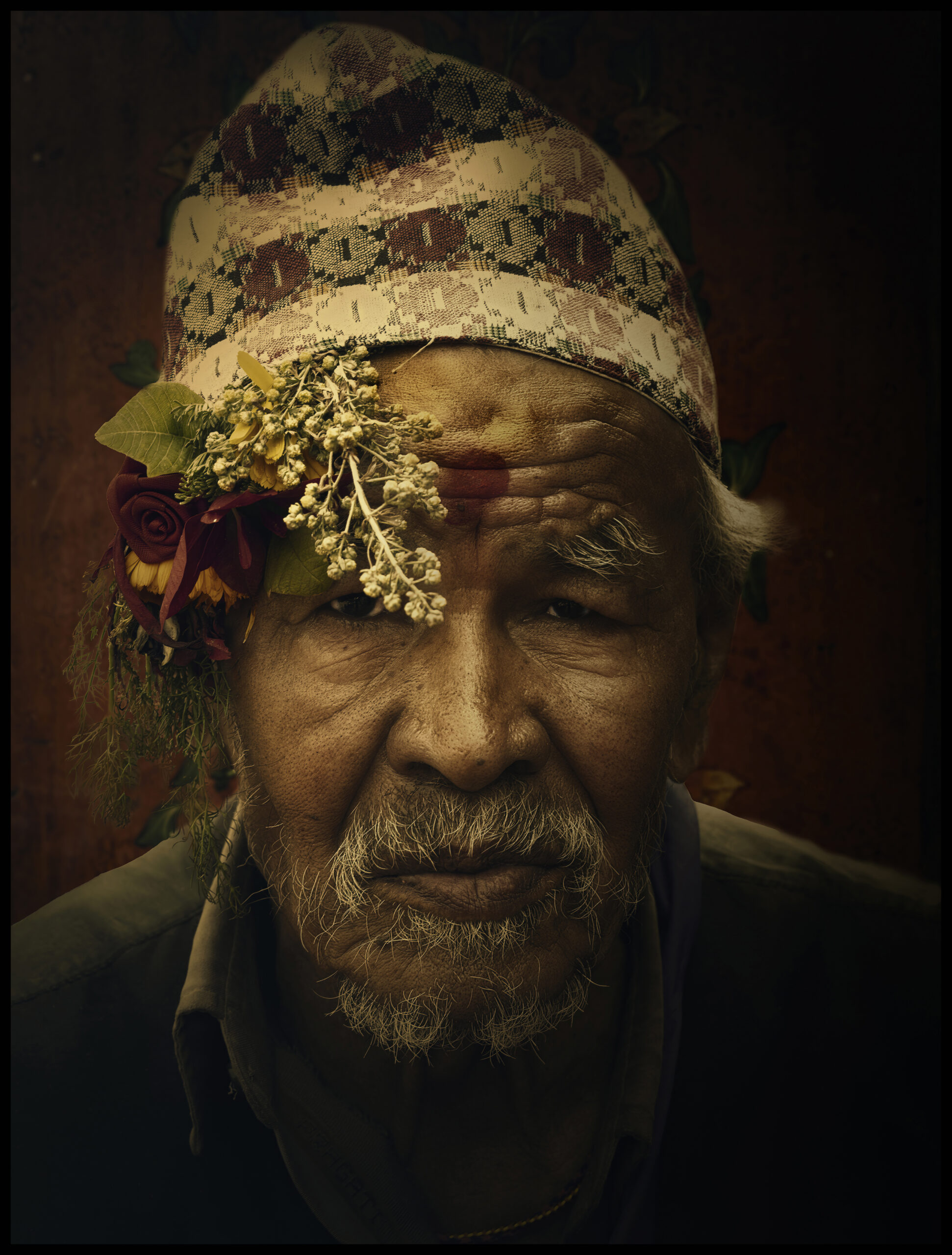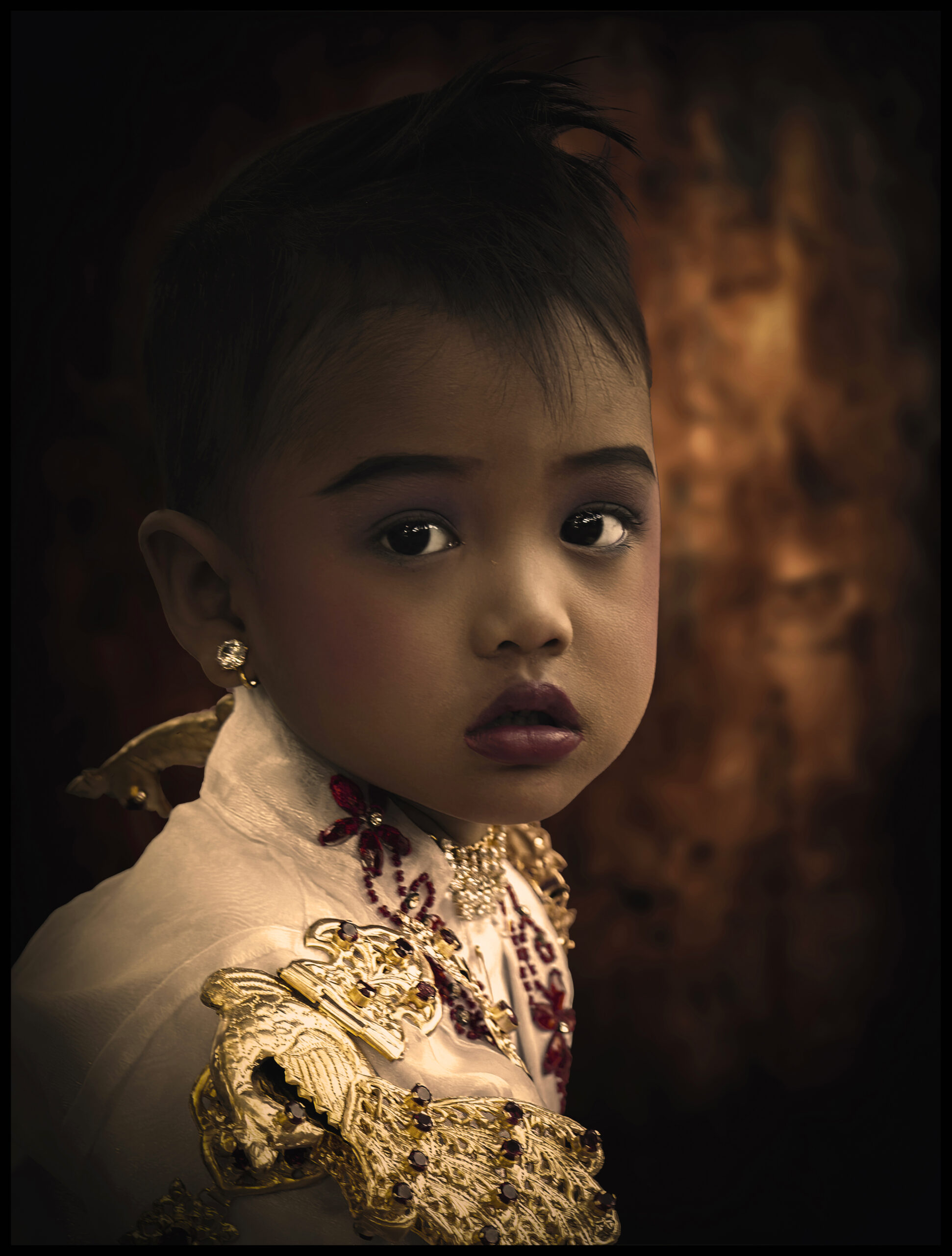 Una procesión encabezada por una cabra y dos niños portando unas palmas, esparce antiguos sones de tambores, flautas, campanillas y trompas. A los niños, les siguen los músicos y a continuación, hombres y mujeres ataviados con sus mejores galas y portando regalos, ofrendas de comida y guirnaldas de flores. Entre todos ellos, destaca ella. Sonrisa radiante y la felicidad desbordando sus ojos, relucientes de dicha, Bello ropaje y flores de distintos colores adornando el cabello recogido, dejando abiertamente expuesto su rostro, su hermosura. Lleva un niño en brazos, vestido de blanco, afeitada la cabeza y al que deja con delicadeza en el suelo. Porque todos quieren estar con ella que, agradecida, se presta a hacerse fotos con los integrantes del cortejo que comparten con ella el gozo de un día especial.