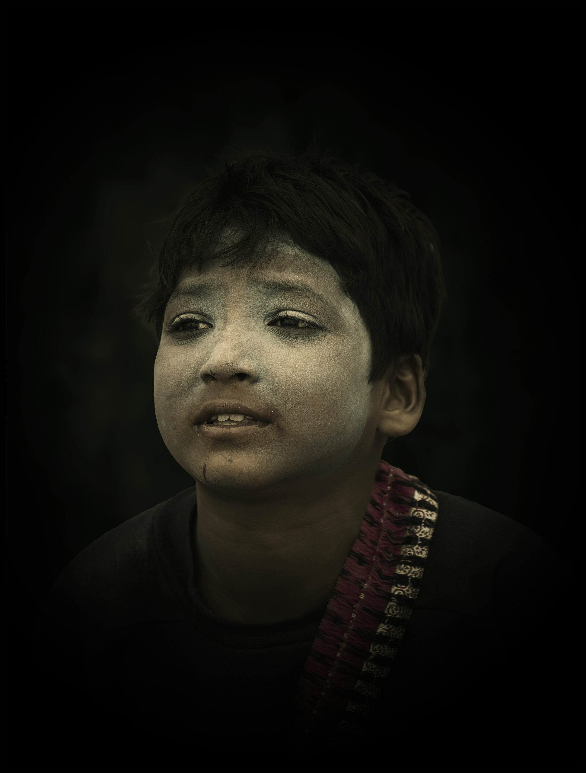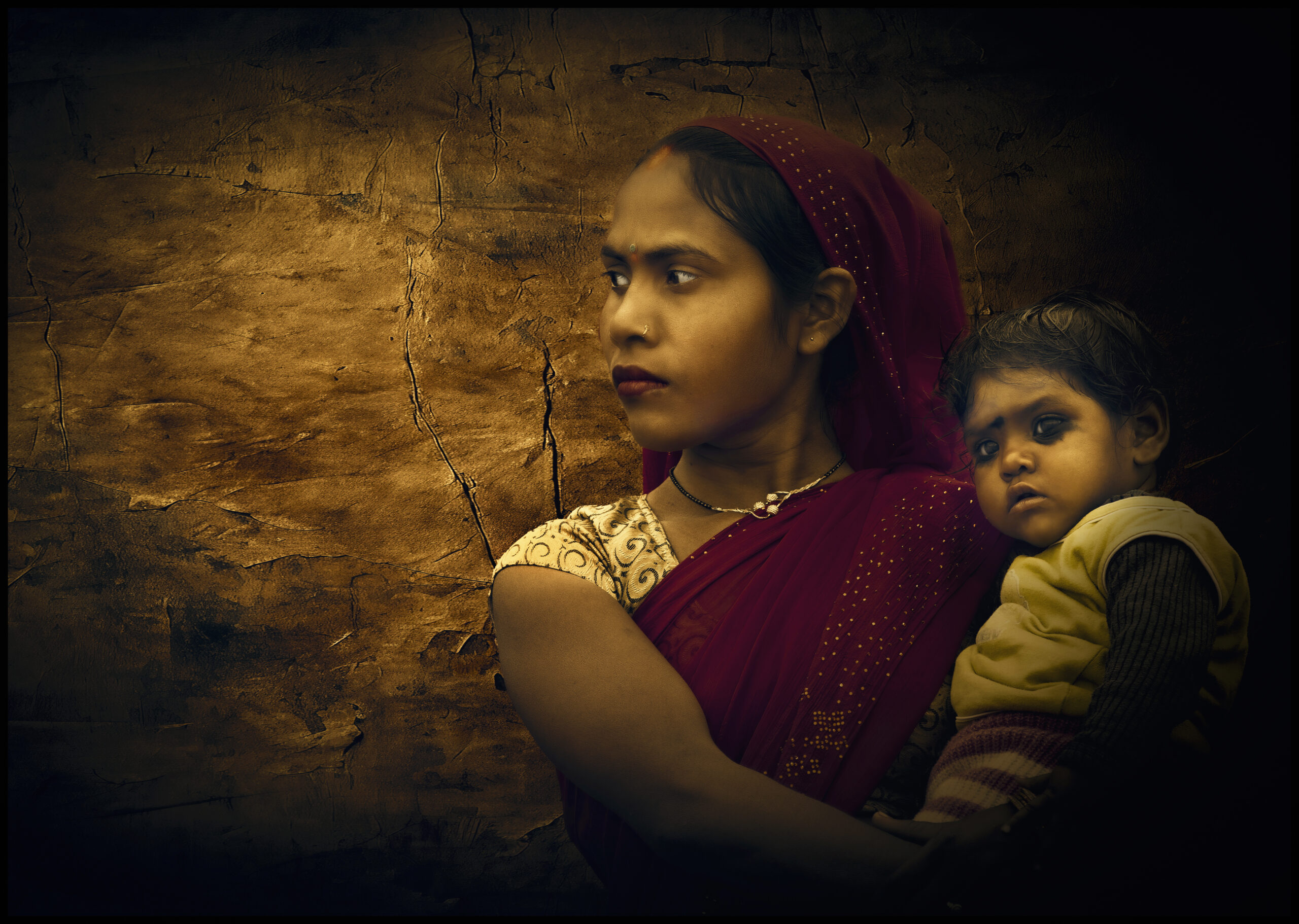Rodeada de oscuridad, buscas ese resquicio de luz que os proteja de los demonios, o de los dioses, que te han resignado a una vida sin esperanza y, quizás, también sin sueños. Y en tu mirada, en tu actitud, juego a adivinar el enfado, la rabia que trasciende de tu gesto.